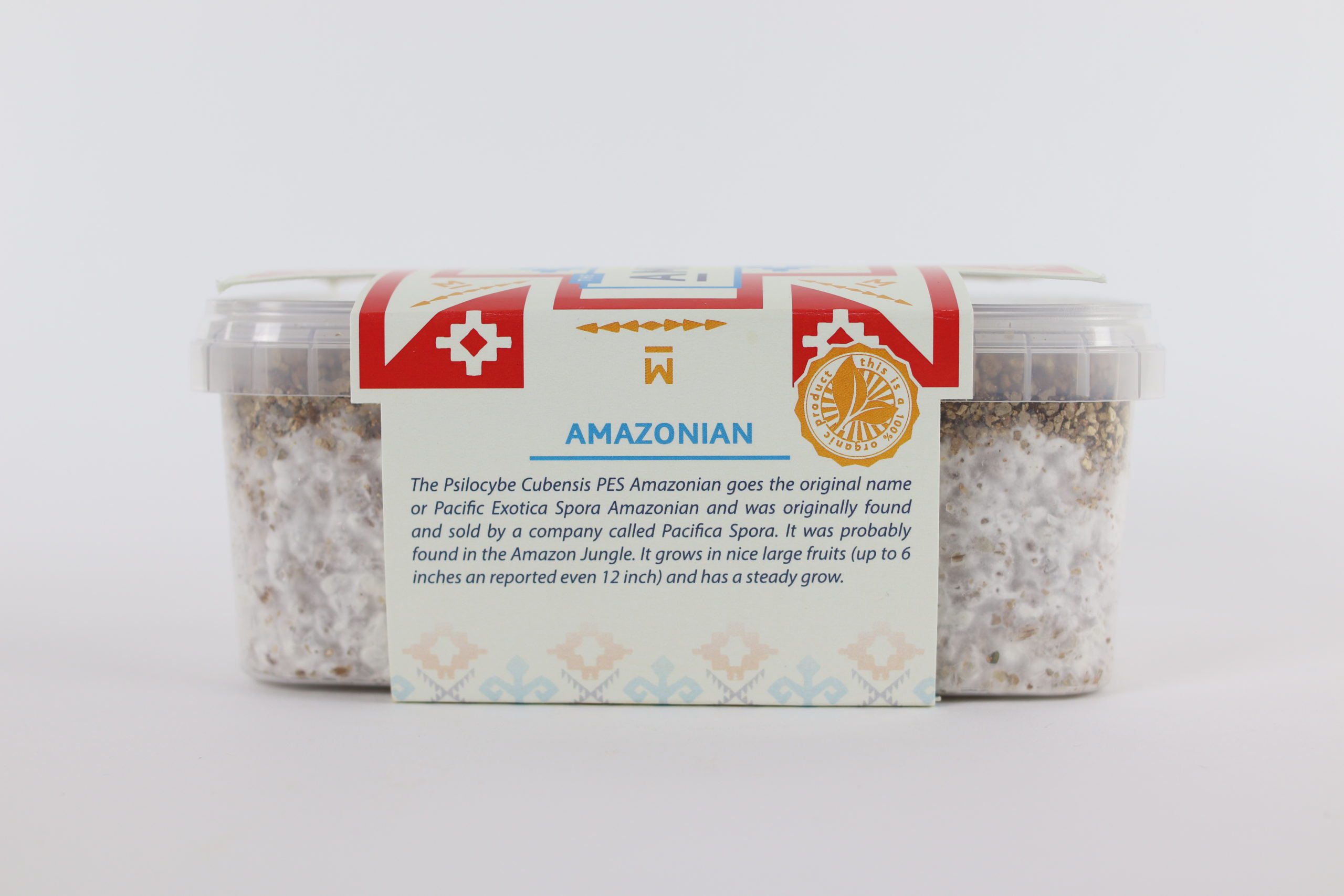 One set contains the following parts: a box of 100% mycelium colonised substrate, a plastic bag fitted with an air filter, two paperclips and a manual.