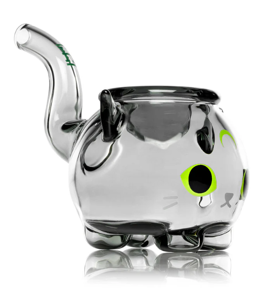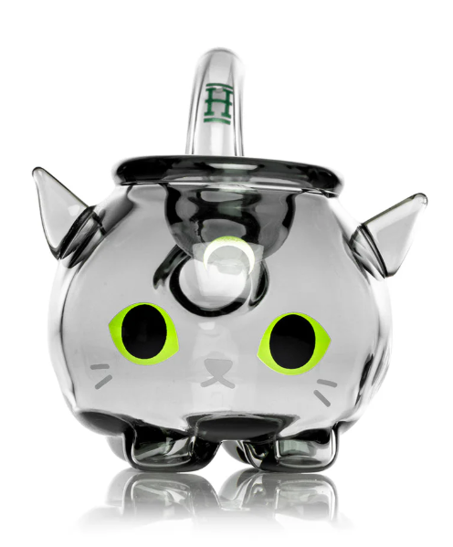Shaped like a playful cat and made from thick borosilicate glass.
