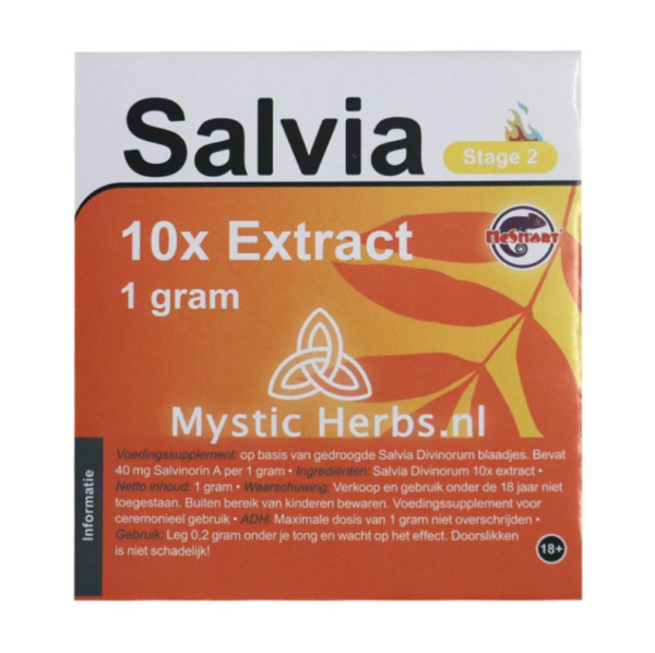 This standardized Salvia divinorum extract is ten times more concentrated than the dried leaves. The effects of an extract are much shorter in duration, about ten minutes rather than two hours, but also way stronger.